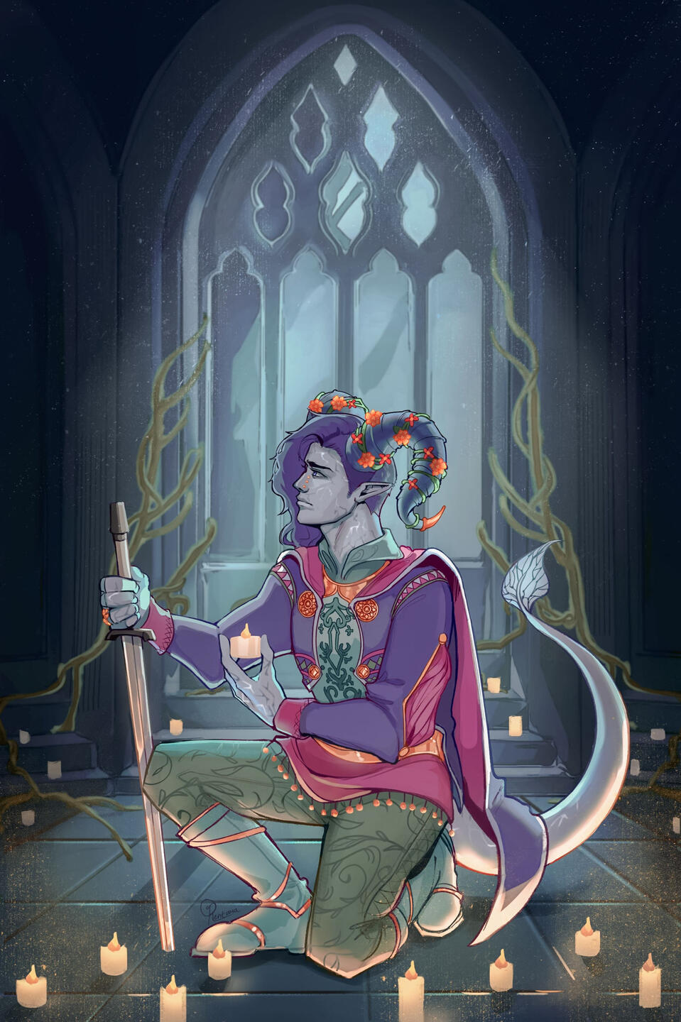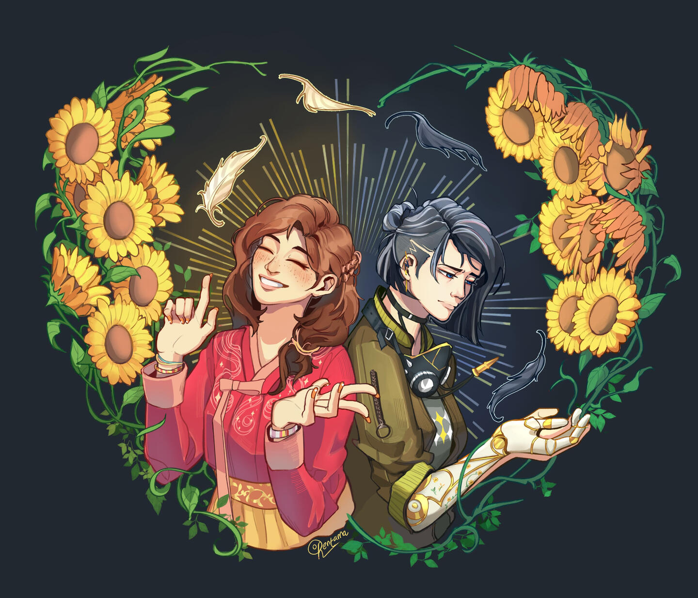 You may use the commissioned artwork for promotion on social media, with credit to me.